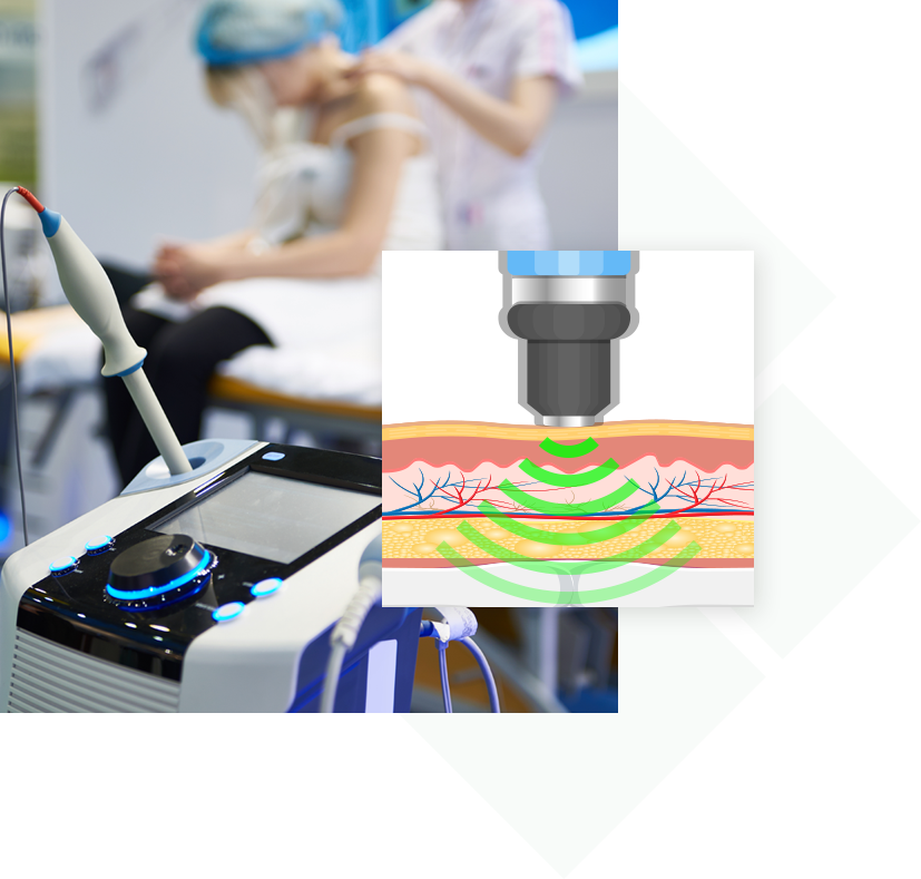 Druck, und Stoßwellen unterscheiden sich sowohl in ihrer physikalischen Charakteristik als auch in der therapeutischen Eindringtiefe ins Gewebe. So eignet sich die radiale Druckwelle gut für oberflächennahe Schmerzpunkte (Muskeln/Faszien) während für tiefergelegenen, chronische Sehnenansatzerkrankungen die fokussierte Stoßwelle verwendet wird.